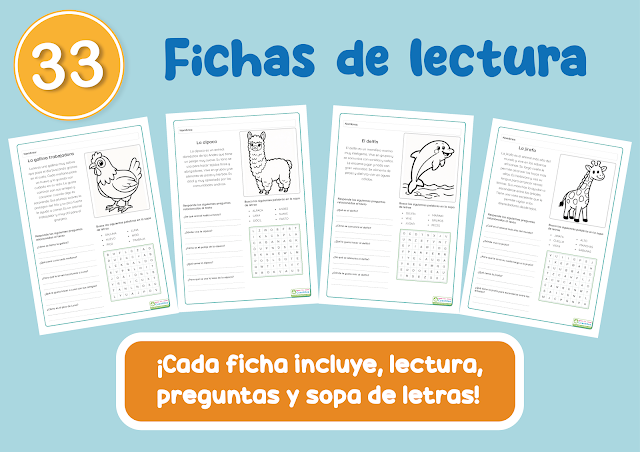 Una encantadora colección de lecturas educativas creadas para despertar el amor por la lectura y acercar a los niños al mundo animal. Cada ficha presenta textos breves, claros y divertidos, que invitan a conocer las características y curiosidades de diferentes animales mientras se desarrolla la comprensión lectora. 🦋🐢🦜